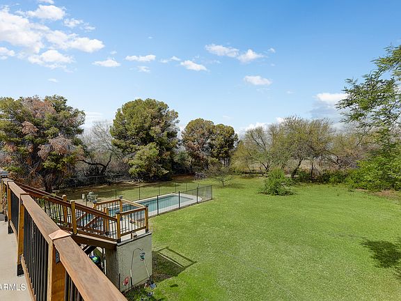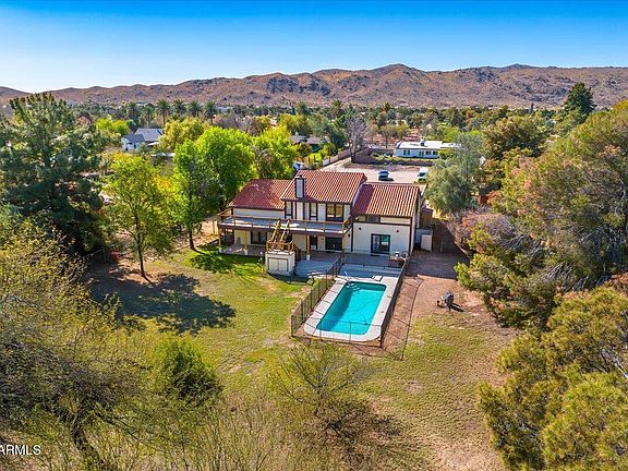 Nestled on just under an acre of land, this stunning 5 bedroom, 3.5 bathroom home at 3264 E Vineyard Rd offers a perfect blend of charm and functionality. Inside, you'll find beautiful Saltillo tile floors, a cozy fireplace in the living room, and a kitchen with granite countertops and stainless steel appliances. The open layout allows for plenty of natural light to fill the space. A spiral staircase leads to a loft with vaulted ceilings and a balcony overlooking the expansive lot. Enjoy a huge bonus room upstairs, and unwind in the fenced-in pool outside. Plenty of land to make your own oasis in the city.