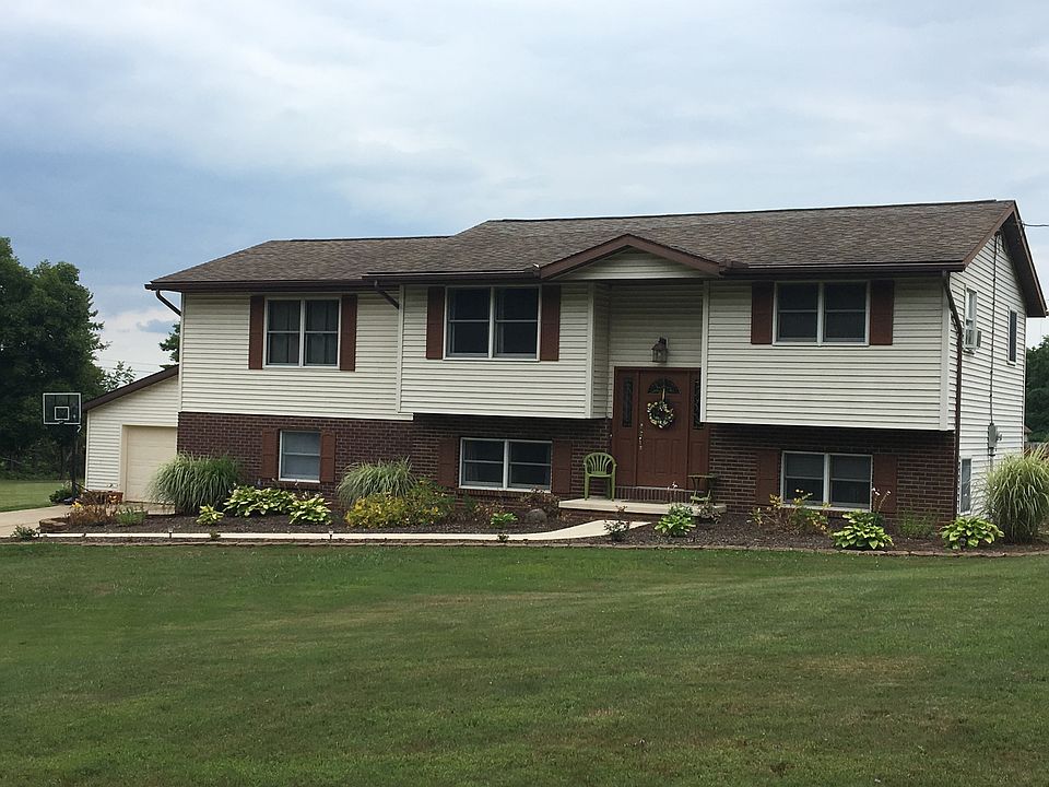 One owner, built bilevel home on corner 1.22 acre property in 1983, with additional 1.10 acre property (purchased in 2000) directly abutting this property. Upper level: 2 BR, hall closet plus hall linen closet, full bath, new kitchen & dining room open to new 400 sq ft LR, both with vaulted ceilings. Lower level: 2 BR, 1 bath, hall closet, laundry/utility room, family room leading to 2 car insulated & finished garage. 2001: Professional remodel, adding 400 sq ft open floor plan LR above insulated garage with vaulted ceiling through to enlarged kitchen. Good carpet & padding in new addition LR only. 2 lighted ceiling fans in vaulted ceiling. French doors off LR to new extended 12x32 upper deck & stairs, with brick patio beneath. Pella windows in LR with fanned window facing corner lot. Nice view & great natural lighting. Built additional 2 car garage & cemented entire driveway. New architectural shingled roof over entire house. Kitchen & Dining Room: All new custom built oak cabinets & pantry, 2 decorative leaded glass-fronted cabinets, new oak island in kitchen with cooktop, all new appliances: convection wall oven, regular oven, refrigerator & dishwasher. All new lighting in kitchen & dining, canned lighting in kitchen vaulted ceiling. New Pergo floors throughout entire upper level including BR’s. Oak stairs & railing system installed. New front door system with sidelights & installed. 2014: Installed new 4x18’ above ground pool. Installed water softener system & reverse osmosis water filtration to kitchen. Installed dark wood grained luxury vinyl plank floor throughout entire finished lower level & BR’s. 2015: Additional landscaping with potager garden and fenced-in (wooden) back yard and surrounding pool. Updated lower bathroom. 2018-2019: Installed new pool deck, new pool pump & sand filter, new vacuum.