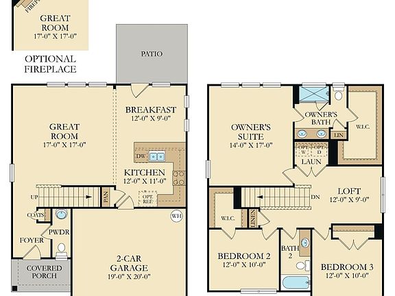 The Crestwind is a two-story home designed with busy families in mind. The first floor features a family room for shared moments, a breakfast room for memorable meals, a kitchen for inspired cooking and a patio for outdoor enjoyment. Upstairs are three bedrooms including the luxe owner’s suite for restful nights and a loft that adds shared living space. Plus, our signature Everything's Included program means you will get quartz or granite kitchen countertops, subway tile backsplash, ceramic tile, and luxury vinyl plank flooring at no extra cost! Welcome to Elizabeth, a sought-after master-planned community located in the heart of Fort Mill, offering 7 collections of new homes.