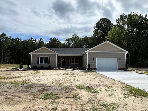 Absolutely stunning new construction home in Suffolk on one acre. Large open floor plan with LVP throughout the main living area and bathrooms and carpet in the bedrooms. Kitchen features soft-close cabinets with granite countertops, stainless steel Samsung appliances, breakfast bar, and pantry. All bedrooms are ample size, but the primary en-suite is a spacious 16'x14' with a tray ceiling, stand-alone soaking tub and separate shower, double sink, and a walk-in closet. On the outside, you can enjoy morning coffee on your 6'x19' front porch and have fun cooking out on your back patio. Construction has been completed and we have the Certificate of Occupancy. The real estate taxes were estimated off of the latest projected assessment.