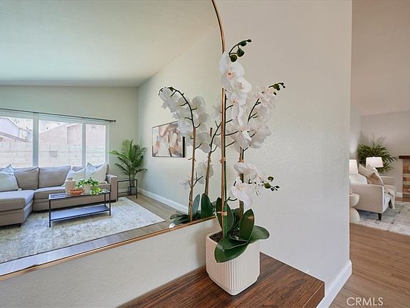 Immaculate and stunning 3-bedroom, 2-bathroom home, move-in-ready with fresh paint and upgrades .With vaulted ceilings that enhance the sense of space and light throughout. As you walk in, a welcoming living room is characterized by warmth, comfort and inviting atmosphere in a cozy space with ample natural light streaming through large windows. Spacious and inviting family room featuring a stone-like fireplace perfect for gatherings. This space seamlessly flows into the adjacent remodeled kitchen with quartz countertops and stainless-steel appliances, and dining room, offering an ideal open-concept layout for both entertaining and everyday living. Step out into a large, covered patio is just a few steps away from the sparkling pool. This outdoor oasis is perfect for relaxing, featuring ample room for dining, lounging and enjoying the poolside atmosphere. The designated garden area at the back with small fruit trees is perfect for planting. This beautiful home has RV parking with 220V hook-up, whole house UV light air filtration, whole house water softener and alkaline water filter in the kitchen. Close to California Citrus State Historic Park, Castle Park, Galleria at Tyler, Metro Station, Hospital, Schools and University and Restaurants.