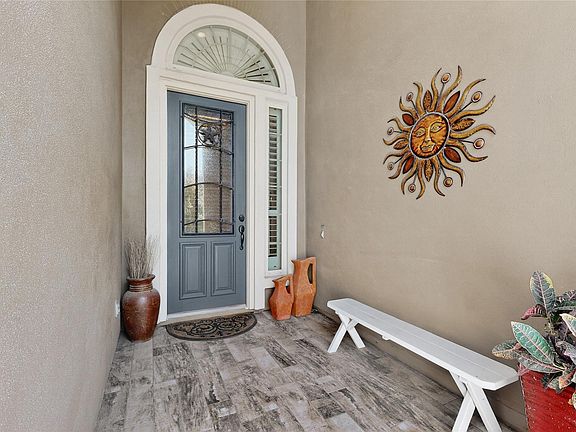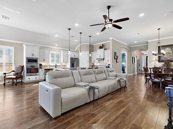 Step inside to a world of fantastic upgrades and architectural details. New Roof and gutters installed September 2025. Soaring high ceilings and grand 8-foot doorways enhance the expansive, flowing layout, complemented by beautiful wood floors, elegant crown molding, and custom shutters throughout. The heart of the home is the gourmet kitchen, an entertainer's dream featuring a gas cooktop, gorgeous granite countertops, stainless steel appliances, a large breakfast bar with pendant lighting, a charming apron sink, and a walk-in pantry. It flows effortlessly into the family room, formal dining area, and breakfast room. The family room is a welcoming retreat, showcasing custom built-ins and a cozy stone gas-log fireplace, perfect for intimate gatherings. The spacious primary bedroom suite offers a serene escape with a picturesque bay window, granite double vanity, a frameless shower, and a custom-designed walk-in closet. An executive office, complete with French doors and beautiful custom built-ins, provides the ideal work-from-home environment. A guest bedroom with an en suite bath ensures comfort and privacy for visitors. Outdoor living reaches new heights with a covered and extended patio, featuring a fully equipped outdoor kitchen with granite counters, remote controlled shades enclosing patio. The private backyard is a meticulously maintained, low-maintenance paradise with durable turf, xeriscaping, beautiful landscaping, and a striking stone wall. Enjoy resort-style amenities within this esteemed 55+ community, including sport courts, a pool, spa, clubhouse, and full workout facilities, offering an unparalleled living experience. Don't miss this rare opportunity to own a home of uncompromising quality and style. Schedule your private tour today!