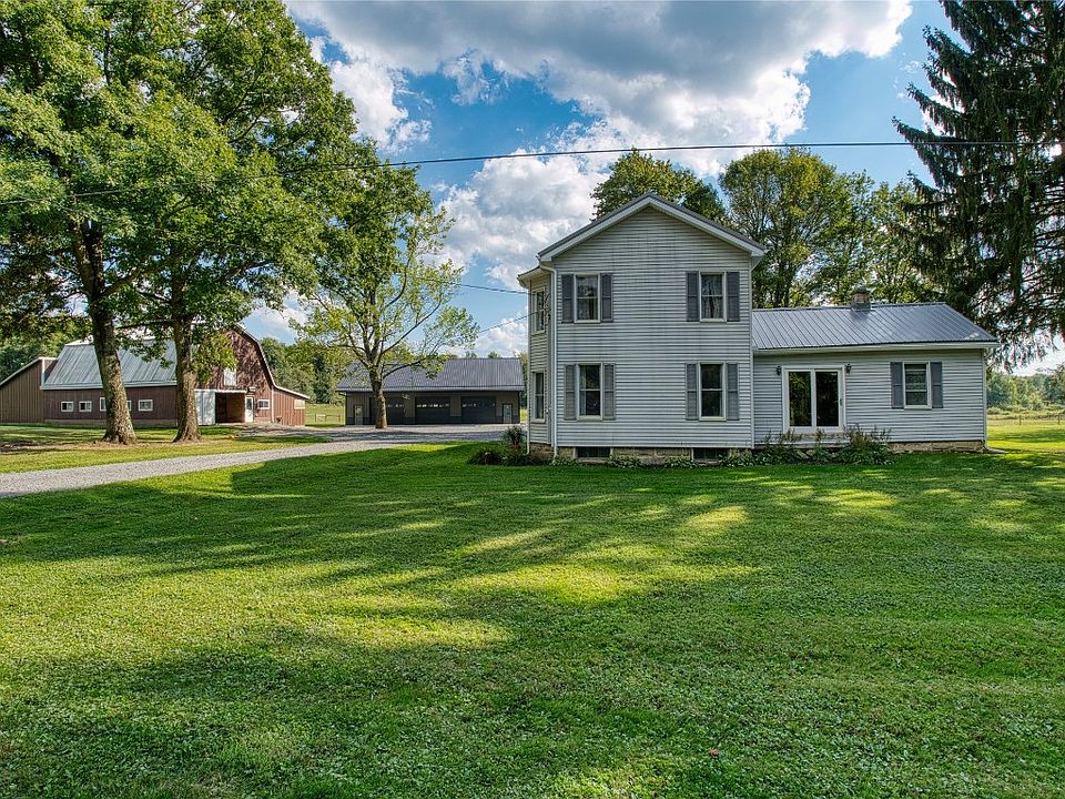 Discover country living at its finest with this spacious 4-bedroom, 2-bath home offering approximately 2,100 sq. ft. of living space on 24 beautiful acres. Equestrian enthusiasts will love the 5-stall horse barn, open pasture, and 3 separate horse shelters—perfect for accommodating multiple animals. A chicken coop adds to the property’s charm, making it an ideal spot for hobby farming or homesteading. Car enthusiasts or those needing extra storage will appreciate the brand-new 6-car garage, built this spring, with the option for in-floor heat (hookup not yet completed). The property also includes a gas well, providing free gas—a rare and valuable benefit. With wide-open acreage, an abundance of wildlife, functional outbuildings, and modern conveniences, this property is ready to support your lifestyle, whether you’re looking for a family homestead, a horse lover’s retreat, or simply room to spread out and enjoy the land.