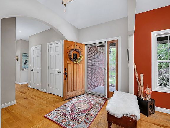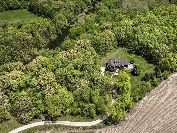 Calling all Homebodies! Rustic elegance defines this home- cozy yet chic w/ a casual upscale vibe. Feel like a MILLIONAIRE, surrounded by 10+ ACRES of woodlands along THE MAZON RIVER w/ a home curated for entertaining family & friends while being "the special place" you've carved out as your own beautiful and peaceful sanctuary. TUCKED AWAY from the road between farmland and woodland offering a secluded stress free living experience where nature is your neighbor. As you follow the driveway back to the home, you pass an old Oak & Hickory Grove perfect for picnics, bonfires and lazy days on the hammock. As you pull up to the home, a meandering paver walkway invites you to the front entrance and the restful art sculpture in front encourages you to take your time, listen to the birds and take a deep breath. Coming inside the home you are met with a MASSIVE WOW FACTOR that never gets old & will make you proud every time. CATHEDRAL CEILINGS, a floor to ceiling real wood FIREPLACE & the impactful view of the trees define the GREAT ROOM that is the perfect place for gathering. Home chefs wouldn't have it any other way with the openness that defines the saying, "good food, good friends, good times". The flow between the different spaces within the larger Great Room area makes both big parties and simple game nights a memorable experience. There are two maintenance free TREX DECKS. The COVERED BACK DECK is a favorite place to unwind, birdwatch and count your blessings even while the rain is falling or retreat to the EXPANSIVE SIDE DECK for weekend dinners on Autumn evenings surrounded by mounds of hydrangeas, a stunning red maple tree, plenty of gold leafed hickory and pine trees. The kitchen is the hub of this main space with all professional grade VIKING APPLIANCES, loads of cabinet space for all your favorite cooking utensils plus the WALK-IN PANTRY is simply a dream affording you the luxury of organizing all your specialty equipment & your secret stash of chocolate. As an extension of the kitchen is The Oven Room, housing a built-in ITALIAN STYLE WOOD FIRED OVEN that is the highlight of the Winter and Fall Seasons. Wood fired old world pizzas are one of many possibilities along with the ambiance of the oven itself is truly a special quality of this home that accentuates its' inherent personality of being a cozy retreat for homebodies. Just off The Great Room is an expansive 400 sq ft+ LIVING ROOM with SOARING CEILINGS and beautiful views of the woodlands. This room is drenched in possibilities to accommodate the power of play for you & your friends, a music room for jam sessions, a playroom, or simply another gathering space. There are THREE BEDROOMS ON THE MAIN LEVEL that invoke a restful & cozy nights sleep. The master bedroom has a large bathroom, walk in closet and laundry en suite. The master bath is finished in SLATE AND STONE TILE, whirlpool tub, and marble. The second full bath is also finished in slate with a rain shower fixture, soaking tub & a nature inspired vessel sink. The lower level features RADIANT-HEATED EPOXY FLOORS that shimmer with natural light by day and glow under ambient lighting at night - ideal for movie marathons, record listening, or fireside reading. A large FOURTH BEDROOM currently serves as a Wellness Room with an infrared sauna (available separately). A gorgeous bathroom with a walk-in CERAMIC TILE SHOWER and custom vanity completes this level. The lower level FRENCH DOORS open to a paver patio perfect for your competition BBQ smoker always ready for your next summer party. The rain water harvesting system feeds a tranquil WATERFALL as you sit among the native plantings that serve pollinators like hummingbirds, butterflies, and honey bees. Grab the tubes or kayaks and float the river or go fossil hunting and fishing while taking in the exceptional treasure and wild nature of The Mazon River. A stylish, cozy & well-loved home surrounded by nature awaits.