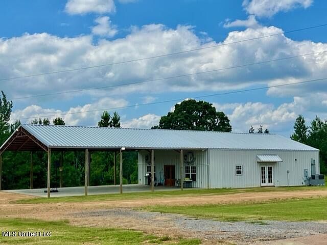 HOME SWEET STEEL HOME~ 16+/- ACRES! Open concept, energy efficient, low maintenance home reduces repair & upkeep expense! The family room is accented w/ steel beams & ceiling fan. Kitchen provides plenty of storage, SS appliances, farm sink, 8 burner gas range w/ 2 ovens & vent hood. Bedroom includes a dressing table & mirror. Closet space is located in laundry room with W&D hookup, sink & tankless hot water heater. Bathroom has an oversized shower, rain shower head. Located upstairs is a loft & full bath that can serve as 2nd BR. Included is an above ground pool& deck, workshop w/ roll up door & electricity as well as a storm shelter. Detached carport for boat coverage, RV parking, separate electricity & septic. Land will be surveyed prior to closing.