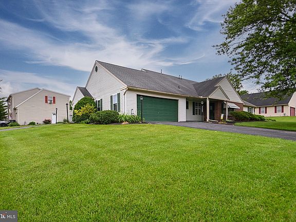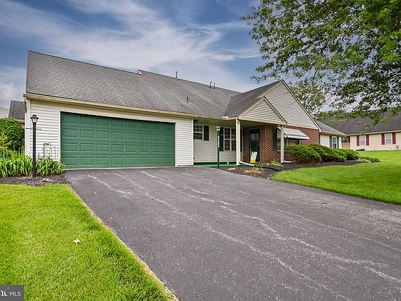 Enjoy comfortable one level living in this inviting villa-style condo, situated on a desirable corner lot with tasteful landscaping and large swaths of lawn between homes, offering a sense of privacy and space. The wide driveway and oversized two car garage provide ample parking, and lead to an inviting front porch, perfect to sit and enjoy the morning sun or evening shade. Inside you will find a spacious open layout with living and dining room combo, kitchen with all appliances, handy laundry area, lots of closet space and half-bath. The generous primary bedroom is equipped with a walk-in closet and ensuite bath with an updated walk-in shower. The second bedroom is perfect for an office or to welcome your guests! This home has been lovingly cared for and is waiting for your cosmetic touches to make it your own! Glen Hollow Condos is a 55+ community of duplex residences that provide easy, care-free living, but with the feel of single family homes, conveniently located just minutes to Route 30, shopping, dining, major medical campuses and activities. Welcome home! Please note: Some photos have been virtually staged.