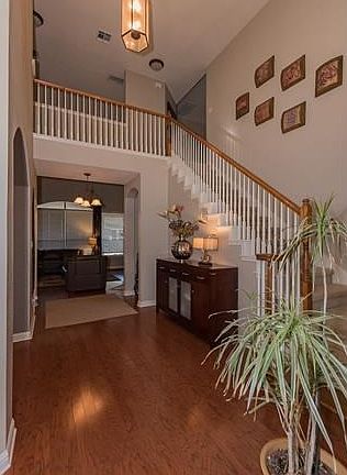 Fantastic Home! This home features a culdesac corner lot, oversized covered patio in back, and covered porch in front. Koi pond, storage shed, kitchen has granite center island and corian counter tops. walk in pantry and oversized laundry room. 1st floor has hardwood floors, hard tile in kitchen, carpet on stairs and upstairs. Master has double sinks, separate tub and shower and HUGE walk in closet w/ shelving! Office on the first floor so 4 bed plus office! upstairs living area