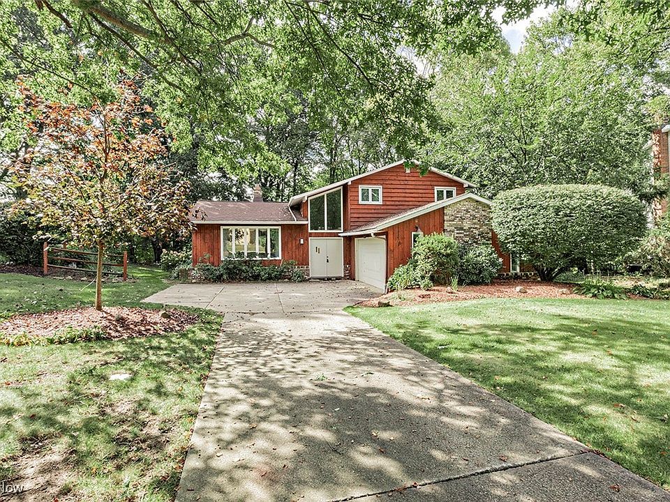 N Solon location! Welcome to this 4 bedroom 2 bath split level with a private wooded yard. Sellers have made many improvements including newer roof, 7/2025 AC, furnace about 4 years old, 2025 electric box replaced, newer windows throughout the home except in kitchen and picture window in living room, freshly painted interior and exterior, clean and ready to occupy! First floor bedroom can be den/office. All appliances included.. Eat in kitchen overlooks paneled family room with fireplace and sliding doors to the rear yard which has vegetable and flower beds.
