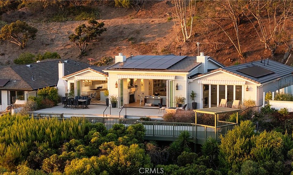 Completed in 2024, this single-level Cape Cod inspired residence is a celebration of biophilic design bringing light, nature, and tranquility into every space. With 3 bedrooms and 3 baths, the home seamlessly connects indoor luxury with the restorative power of the outdoors. Natural materials and organic textures ground the interiors. White oak flooring, limestone, and marble finishes are complemented by vaulted ceilings and expansive French doors. Accordion glass doors dissolve the boundary between inside and out, opening to a panoramic ocean-view patio where sun, sky, and sea become part of daily living. The chef's kitchen anchored by a La Cornue range, Sub-Zero refrigeration, walk-in prep pantry, and custom cabinetry flows effortlessly to the entertaining island, designed to gather and connect. The primary suite is a private sanctuary with sit-down ocean views, fireplace, his-and-hers closets, and a spa bath with soaking tub and rain shower head. A guest suite opens to a serene courtyard featuring a water element and lush landscaping, creating its own moment of retreat. Designed for entertaining, the outdoor space features a panoramic ocean-view patio complete with a pizza oven perfect for alfresco dining under the stars. Sustainable landscaping with native plants was carefully chosen for year-round color, while also attracting hummingbirds and butterflies, creating a vibrant and ever-changing natural setting. Additional highlights include a French Art Deco chandelier, biophilic architectural details throughout, smart electric shades, epoxy-finished garage, and a tankless water heating system. Set on a private, single-loaded street in Monarch Terrace, this home embodies elevated coastal living where modern design and nature exist in perfect harmony.
