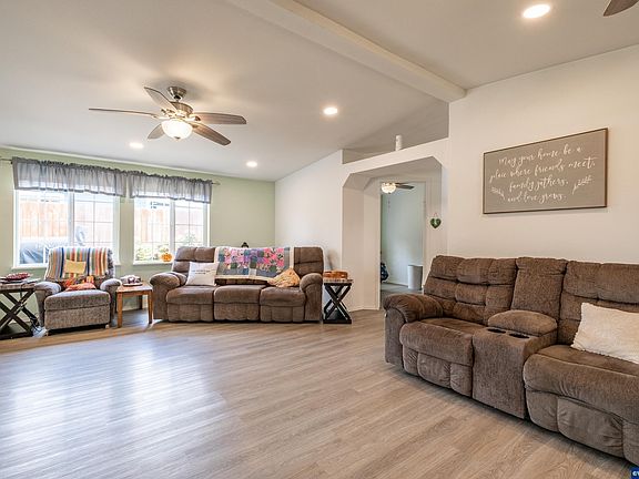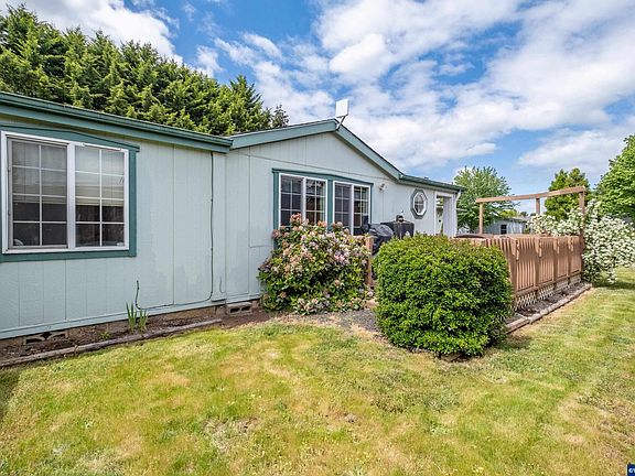 Charming 3 bed, 2 bath manufactured home with tons of windows to bring in natural light! Inside features a spacious living room, large primary bedroom, and a mud room. Handicap amenities include grab bars, walk in shower with seat, ramp and toilet with bidet. Waterproof low maintenance laminate floors throughout plus lots of built in storage! Outside there is plenty of space to garden plus a separate side yard dog run. You will enjoy your evenings on the large deck or tinkering around your 2-car garage.