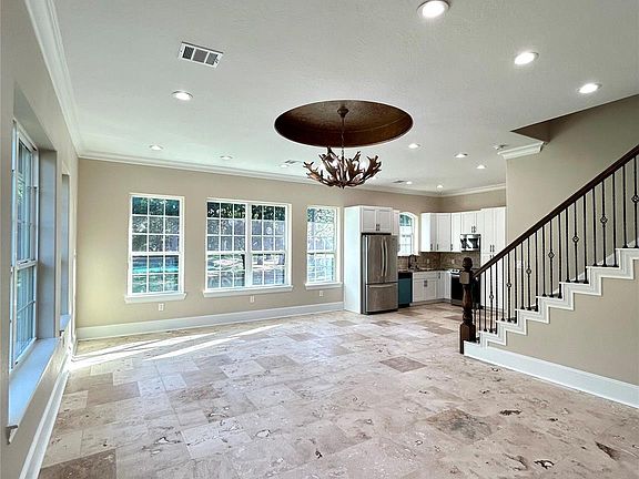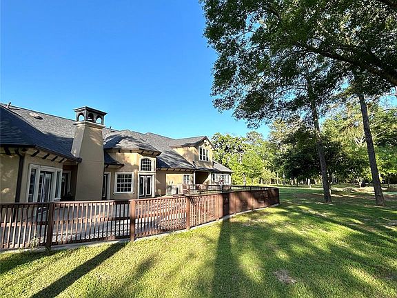 Enjoy peaceful country living in this expansive 6-bedroom, 5.5-bathroom estate on 5 acres. featuring wood, tile, and carpet flooring, crown molding, gas fireplace, formal living and dining rooms, study, built-in shelving throughout, sunroom with tons of natural light, elevator, and circular driveway. Create new recipes in the open island kitchen, equipped with granite countertops, gas range, double ovens, breakfast bar, ample cabinet storage, and walk-in pantry. The spacious primary suite with, walk-in closet, double vanities, walk-in closet, tub, and separate shower. Entertain in the expansive outdoor area, firepit, and detached garage apartment. Situated off FM 1488 and FM 362, residents can find nearby shopping and dining in Tomball Town Center, central Magnolia, and Fairfield Town Center.