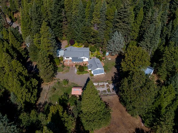 Home and cottage in the mountains with a steam running through it. What more could you want? Beautifully landscaped and fenced with 2/2 home, laundry room/mud room and a 1/1 guest cottage for a total of 2,300 sf. Log cabin with root cellar, 780 sf shop/barn along with many fruit trees. Fenced and gated on 2.8 acres. Cottage was formerly used as a vacation rental. You must see to appreciate.