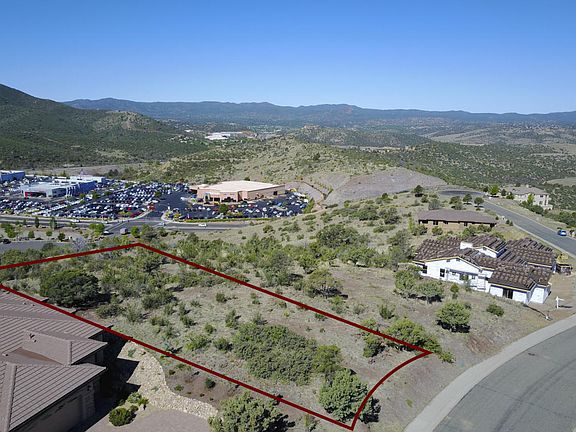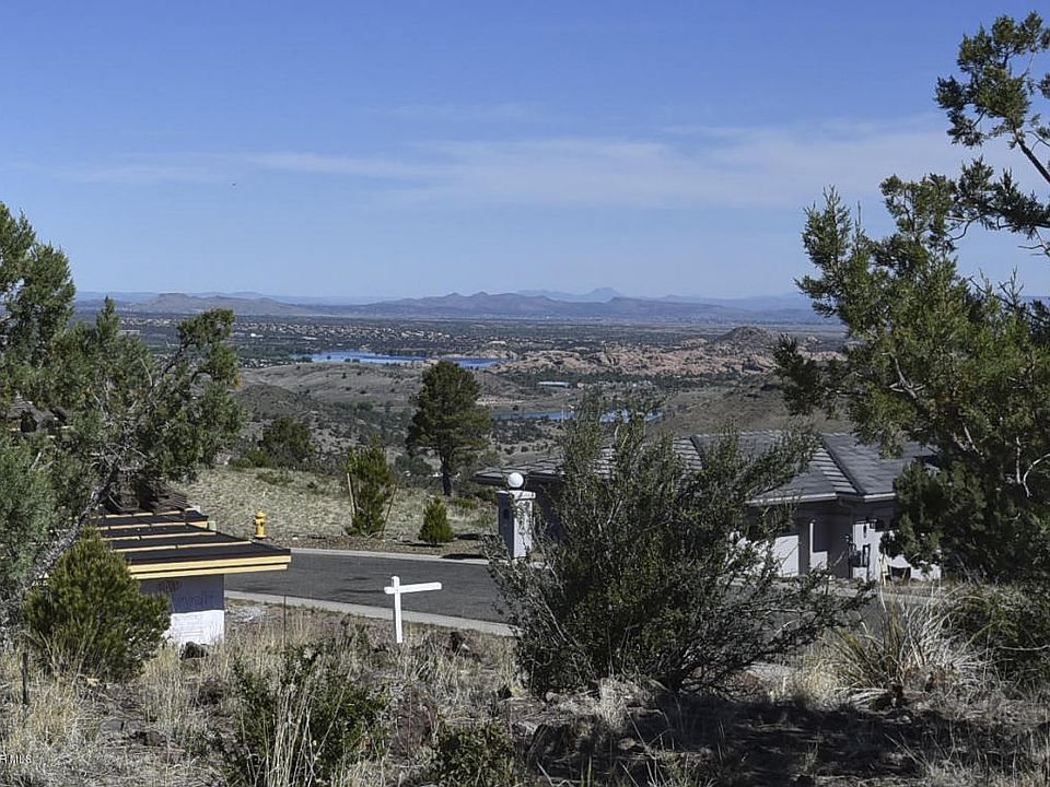 AMAZING Hilltop Views from The Ranch at Prescott with the corners flagged. Owner will consider carry. Mystic Heights neighborhood along Bar Circle A Road capturing Granite Mountain to the WNW, Thumb Butte to the west, the Dells and Watson Lake to the north, and Glassford Hills to the east. This lot backs private open space. Community of custom site built homes with architectural restrictions, minimum square feet, and paved roads with sidewalks, curbs, fire hydrants and underground utilities at lot line. Low annual HOA fees, and separate/optional tennis membership available for courts on south side of Hwy 69 just past Trader Joe's. Located NE of Hwy 69 and Prescott Lakes Pkwy intersection and close to shopping, dining, and recreational hiking trails and lakes.