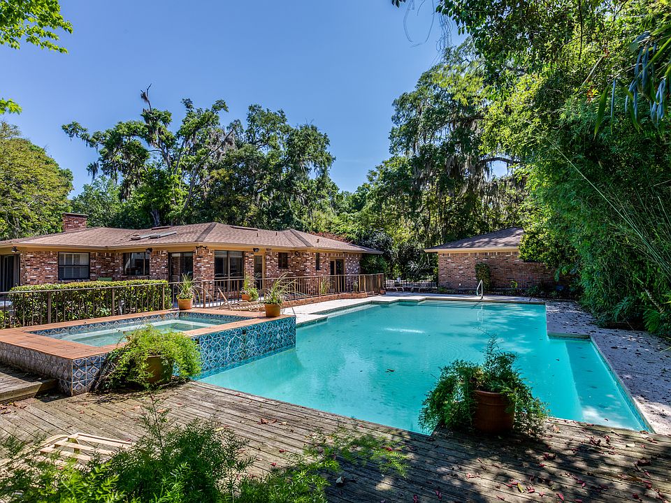 Come home to one of the finest riverfront views in Beauclerc. Expansive 154' riverfront estate lot and 950' deep with 180-degree panoramic views of the St Johns River. Follow the winding driveway past the 100-year-old oaks to your private hideaway. An entertainers dream, over 3 acres featuring pool, hot tub, summer kitchen and huge backyard! Nearly 4000 sqft, 4BR,4BA with in-law suite or optional game room. Eat in kitchen has tons of natural light with pool and river views, marble countertops, walk-in pantry, and pristine original hardwood floors that flow into the dining and living rooms. Spacious master suite has custom built-ins, luxurious master bath, and a walk-in closet. 3 car detached garage and u-shape drive. A rare find. 20 min to downtown, 30 to the beach.