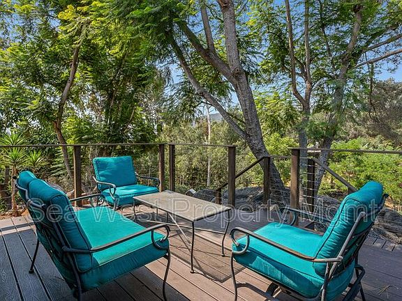 Surrounded by nature and set on a full acre, this 3 bedroom, 2 bath home offers plenty of space to explore, relax, and enjoy the outdoors. A gated entrance leads to a yard filled with winding paths, expansive decking, and open lawn.