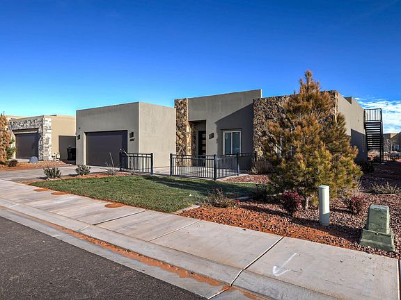 Fully Furnished Customized Rustic Retreat with Rooftop Deck & Hot Tub - the perfect space to relax and take in the scenery. Thoughtfully customized with rustic charm, featuring en-suite bathrooms, walk-in showers and more. Enjoy breathtaking, unobstructed views of surrounding mountains & desert landscapes from this beautifully designed home. Located in a vibrant resort-style community, owners have access to incredible amenities including three pools, spas, pickle ball courts, a fitness center, exclusive golf benefits, walking trails, and fine dining at the clubhouse. This home is ideal as the perfect forever home or second home investment. Conveniently situated just minutes from Sand Hollow Reservoir & the Sand Dunes, & only 30 minutes from Zion National Park.