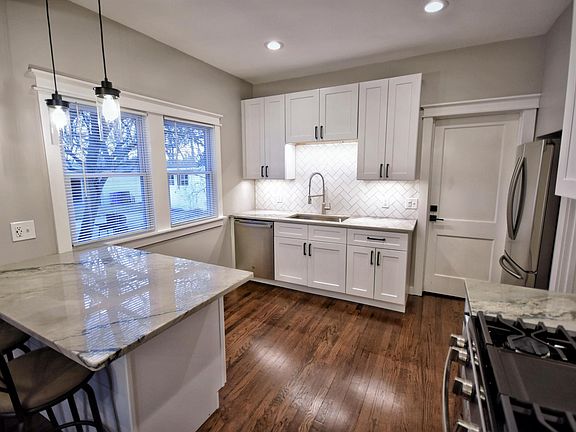 Gorgeous freshly renovated lower unit of a duplex in Cleveland's Westpark neighborhood. This building has been completely renovated and reimagined with an open concept kitchen with an eat-in bar, beautiful quartzite countertops, stainless appliances, fully dimmable accent lighting, refinished oak hardwood floors, extra tall maple shaker cabinets with soft close doors, custom craftsman trim, leaded glass built in cabinets, expansive living room, dining room and office, and all modern amenities including central air, dishwasher, 5 burner gas range with broil and self cleaning features, laundry, tile shower, all new insulated windows, LED lighting, and so much more. Located just blocks from Lakewood and Kamm's corner, and just a few minutes drive to Tremont and Ohio City, this property offers convenient access to dining, nightlife, parks, and shopping. With easy highway access, downtown, Cleveland clinic, the airport, Edgewater and others are all within 15 minutes. The cozy private back yard has access to Mohican Park with beautiful sunset views, string lights, and space for entertaining. If you are looking for a place to call home that you will absolutely fall in love with, look no further. Minimum Lease one year. Security deposit is one months rent. Resident responsible for Gas, Electric. Management pays for landscaping, snow removal, water and sewer. Qualification criteria: minimum 650 credit score, gross income of at least 3x monthly rent, must be a non smoker, must pass credit check and background screen. Pets allowed but will be subject to a $50 monthly pet fee. Resident must maintain renters insurance.