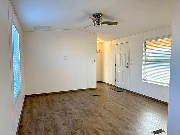 This move-in ready home is located on a secluded lot at the end of the cul-de-sac and features 2 bedrooms and 2 full bathrooms. Kitchen has ample cabinet space and the dining area has nice views overlooking the canal. The split bedroom layout features a master bedroom suite with walk-in closet & newer shower enclosure and a secondary bedroom on the opposite side of the home. Outside features include a spacious fenced yard, covered porch, storage shed, and several raised garden beds. Updates include a new roof in 2020 and new water heater in 2022. The home is fully electric with forced air for heating & evaporative cooler, but there is a gas stub out in the backyard. Lot rent is $480/month + utilities (averages $75/month) which includes water, irrigation, sewer, trash pickup, and a community playground. You’re only minutes to trails, shopping, and dining. Seller would consider seller financing with $30,000 downpayment and 53 months at $980/month, plus monthly lot rent and electricity paid by Buyer.