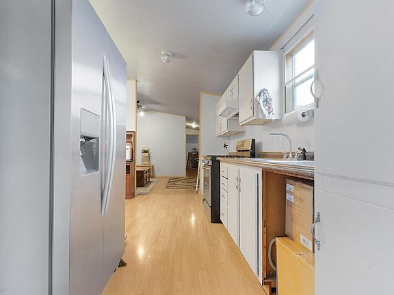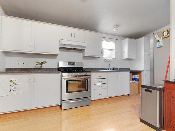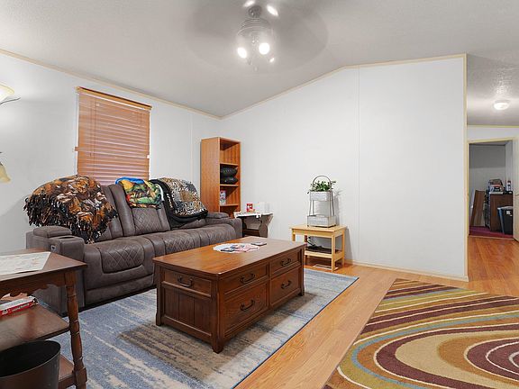 Nestled on a large, fully fenced corner lot, this 1,056 sq. ft. manufactured home offers the perfect blend of comfort and convenience. With three dedicated parking spaces and a spacious backyard shed, this home offers ample storage and convenience to suit your lifestyle. Step onto the expansive covered front porch, ideal for morning coffee or evening relaxation. Inside, you'll love the warm wood laminate flooring, central air conditioning, split floor plan and the kitchen's gas stove—perfect for cooking up your favorite meals. Ready to make it yours? Apply today for park approval and start enjoying this cozy gem!