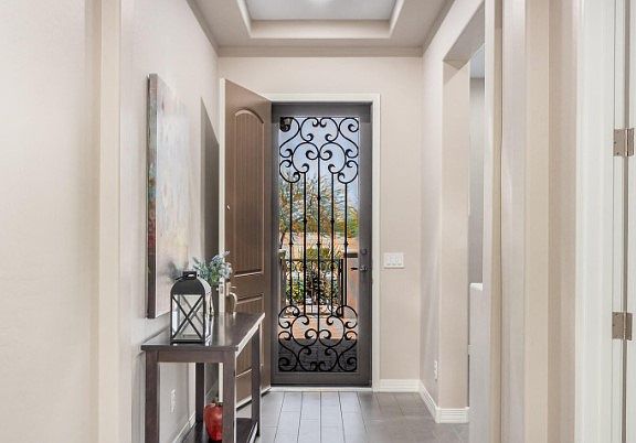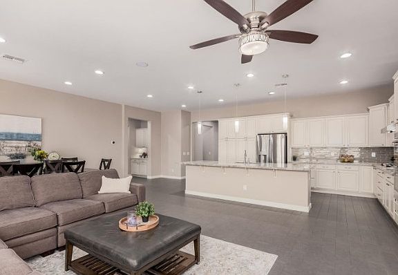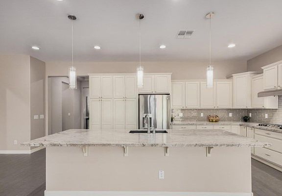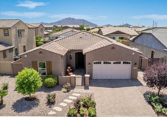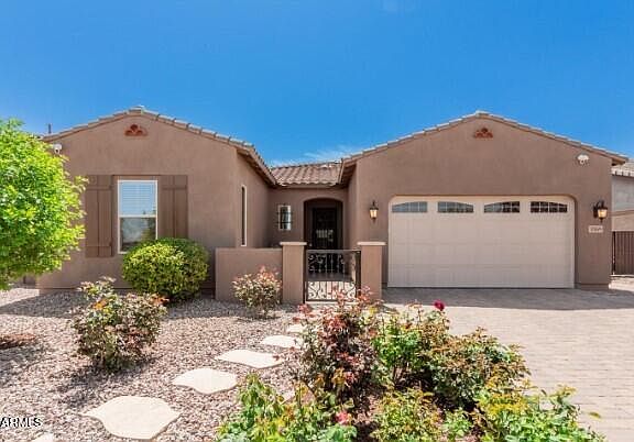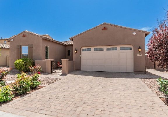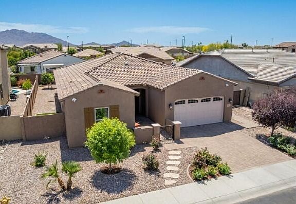 Gorgeous move in ready Shea home is offering 5 bedrooms (one without a closet) and 3 baths. Designed for modern living, the open-concept layout features fresh paint, a split floorplan, and thoughtful upgrades throughout. The chef's kitchen impresses with granite countertops, stainless steel appliances, gas cooktop, double ovens, custom cabinetry, and a spacious island perfect for gathering. The primary suite is a true retreat with an oversized custom tile and glass shower, dual vanities, and walk-in closet. Step outside to enjoy easy-care turf, raised garden beds, citrus trees, rose bushes, and an extended paver patio ideal for outdoor entertaining.