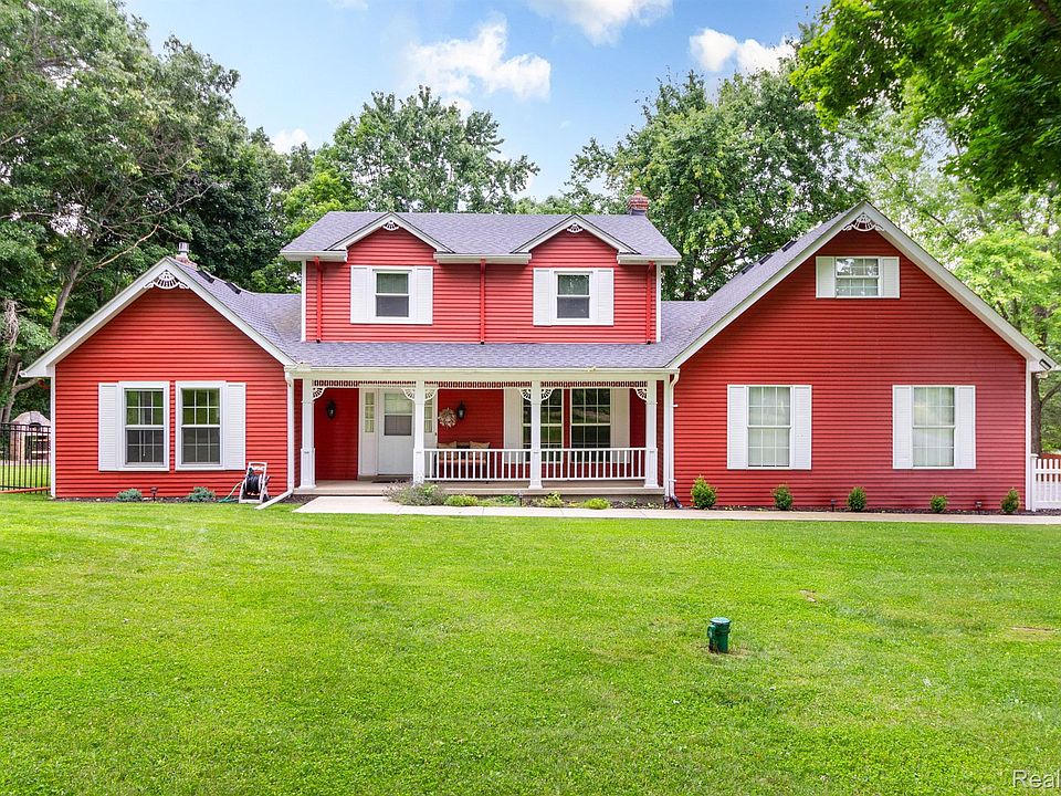 Experience your dream home at 3269 Hixon Road, a tranquil, park-like sanctuary just minutes from downtown Rochester. This pristine colonial greets you with a spacious covered front porch. Inside, a formal dining room connects to a custom kitchen, perfect for entertaining, featuring a door wall that opens to a large deck. A custom pizza oven is conveniently situated nearby on another concrete slab. The cozy family room, with its gas fireplace and new carpet (2019), complements the home's beautiful hardwood floors. Enjoy the practicality of first-floor laundry. Upstairs, discover three sizable bedrooms and two full baths, including a master bath renovated in 2017. The finished basement provides extra living space and ample storage. The property also features an attached 2.5-car garage with a new door (2019) and a workshop, along with a spacious 1.5-story pole barn equipped with water and electric for additional storage. With a whole-house generator included, you'll never worry about power outages.