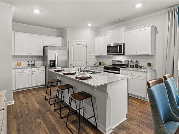 Welcome to 3269 Ryker Road at Oconee Overlook, a brand new DR Horton community in Gainesville. The Sudbury floorplan is a spacious two-story plan featuring 3 bedrooms and 2.5 bathrooms in 1,877 square feet along with a 2-car garage. Enjoy beautiful, wooded views from your back patio. As you step off the front porch, a long foyer welcomes you and leads into the open-concept main living area. A large family room is the perfect place for family and friends to gather or for a quiet night with a book or movie. The family room flows seamlessly into the well-appointed kitchen with a center island, granite countertops, beautiful white shaker-style cabinetry, and stainless-steel appliances. A dining area directly off the kitchen provides space for a dining table and opens onto the back deck or patio. There is also a half bathroom tucked away on the first floor. Up the stairs you'll turn from the landing into the primary suite. A spacious bedroom is complimented by the en suite bathroom featuring a separate tub and shower, dual vanity, water closet, linen closet, and a roomy walk-in closet. Across the landing you'll be led into a loft area that's perfect for a game room or second living space. 2 secondary bedrooms, the laundry room, and an additional bathroom, also with dual vanity, round out the upper floor. Just minutes from Lake Lanier, residents can enjoy endless opportunities for outdoor recreation. With plenty of dining options, shopping centers, and everyday conveniences nearby, Oconee Overlook offers a perfect balance of comfort and accessibility. Call us today to make 3269 Ryker Road your new home today! DISCLAIMER: Photos listed are of a model Sudbury home, not of actual unit. Some specifications may differ.