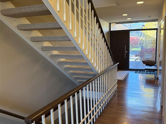 Exceptionally rare offering: a beautifully renovated residence in the highly coveted Ravines Condominiums in Downtown Franklin - originally designed by award-winning architect Sigmund Blum. This private home offers over 3,200 sq ft of living space with 3 bedrooms and a finished walk-out lower level, al showcasing custom cabinetry and thoughtful detail throughout. Enjoy picturesque wooded and village views from four separate outdoor areas and expansive wall-to-wall windows. The open living room features bespoke millwork, a custom chandelier with recessed lighting, and a gas fireplace - leading directly to a serene deck overlooking the lush ravine, ideal for entertaining. The walk-out lower level provides generous additional living space, a full bath, laundry and it's own outdoor patio space immersed in nature. The updated chef's kitchen features solid wood cabinetry, quartz surfaces and a large peninsula for seating, and premium appliances - including two dishwashers. The primary suite includes a private balcony perched in the treetops, a custom built-in wall system, an oversized walk-in closet, a spa-inspired ensuite with skylights. 2 additional well-sized bedrooms - one currently used as a custom wood-built home office - offer ample flexibility. All bedrooms include ceiling fans. Recent mechanical upgrades include: Generac Generator (2024), A/C (2023). A custom whole-home electronic system allows individualized temperature control by floor. With only 14 residences in this boutique community, this is a rare opportunity to enjoy luxury, privacy and architectural pedigree - in the heart of historic Franklin.