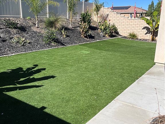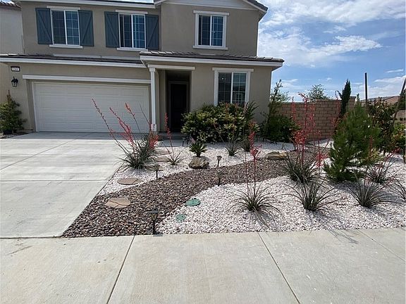 Situated on a coveted corner lot, this residence boasts enhanced curb appeal and privacy. The driveway has been extended to accommodate up to three vehicles, providing ample parking for residents and guests alike. The front yard is adorned with a picturesque array of drought-tolerant plants accented by charming rocks, creating a welcoming and eco-friendly landscape.