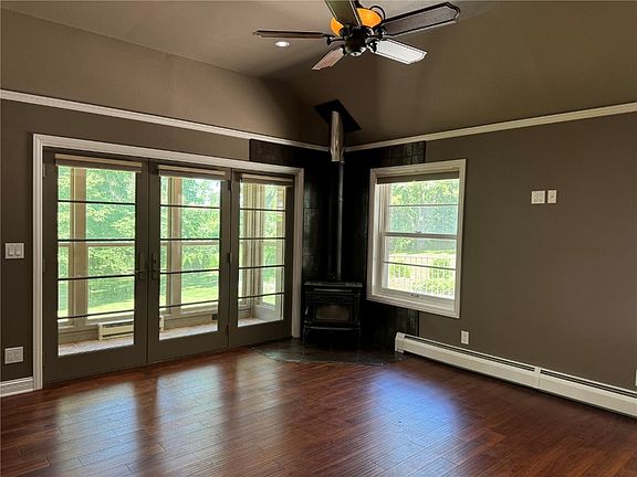 Check back for interior pictures. One of a kind, eclectic design that meets the conveniences of today. Every corner of this home has been updated and improved using high quality, custom finishes throughout. Large living– dining room combo with travertine wall, wood stove, built in buffet and hutch have engineered hardwood that carries into the family room addition through French doors. A second set of French doors off the big family room into the sunroom that leads onto the huge deck-patio that overlooks the picturesque .91 acre lot. Natural light fills the kitchen with solid custom cabinets, granite tops, tile backsplash and Electrolux appliances. Main level ¾ bath with custom floor to ceiling tile and laundry room with additional built-in storage are conveniently located off the kitchen. Upstairs to 3 bedrooms and 2 full baths with floor to ceiling tile. The primary suite has a gas fireplace, his and her closets and a nursery, walk-in closet or office across the hall. Main level office or BR and cedar lined closets throughout. Two bonus rooms with closets and solid hardwood floors above the 3 car heated garage with access from the main entry. Additional 1 car garage with lower level, additional storage under the sunroom and a 16 X 12 garage with power at the rear of the property. This one is a must see to appreciate. Beautiful scenic setting with mature trees and perennial gardens that create a peaceful retreat to come home to.