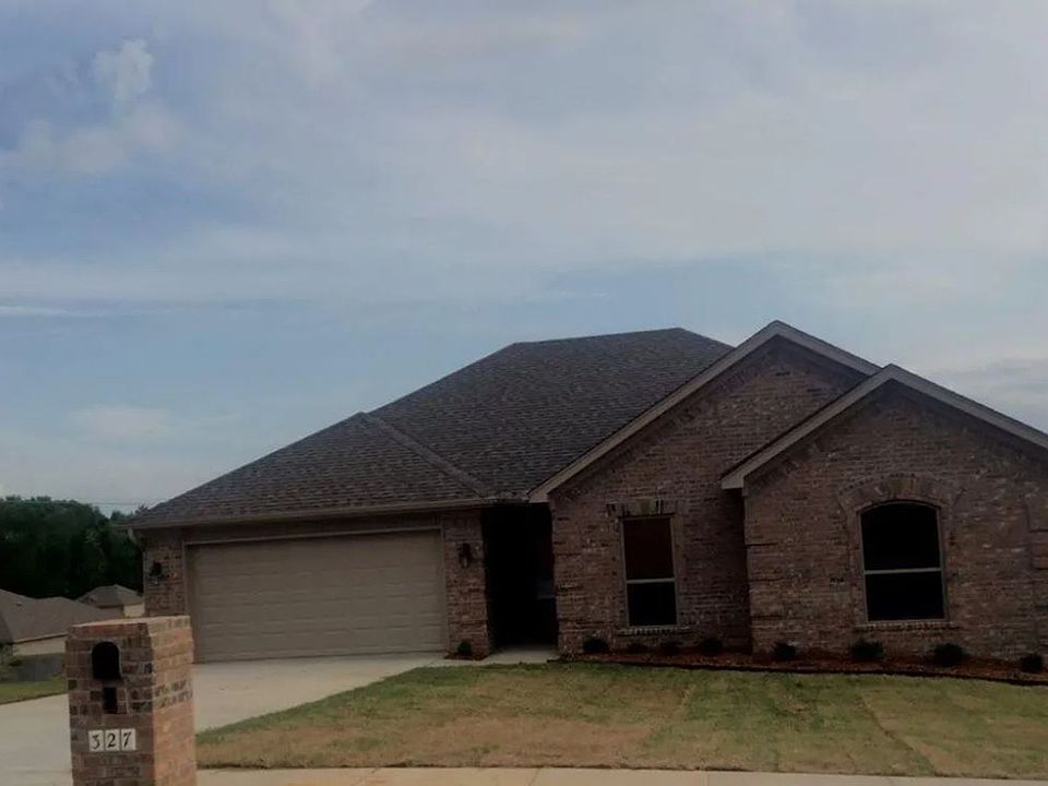 4 bedroom, 2 bath, 1492 sqft. house for lease for $1685/mo. at 327 Austin Creek Dr., Austin AR. Home is a split floor plan with the 3 guest/kids bedrooms with full bath on the hallway and the master bedroom (and bath) on the garage side. Central all electric heat and air, 2 car garage with workbench, all appliances pictured are included with rent. Also included with rent is the Resident's Benefit Package (see bottom of ad); no utilities are included. Fenced in backyard (wood picket privacy) with anti-digging gravel beds at the base and a rear back deck. Window coverings are provided- 2" blinds.