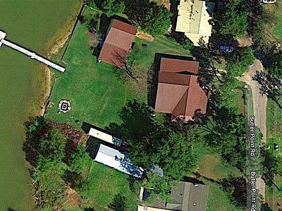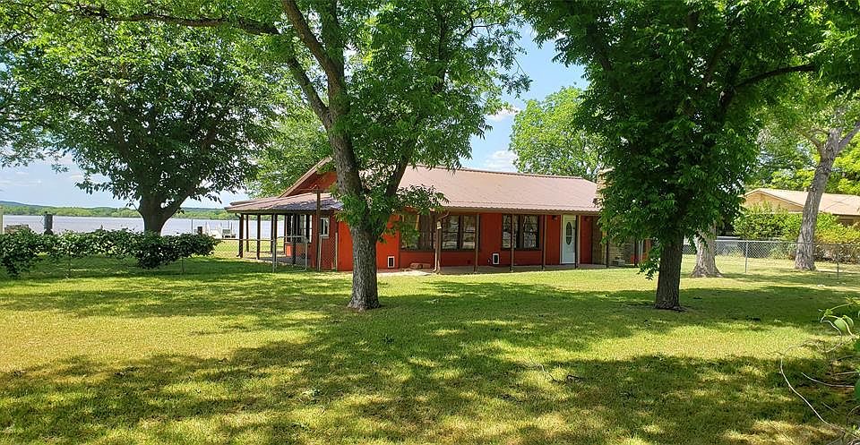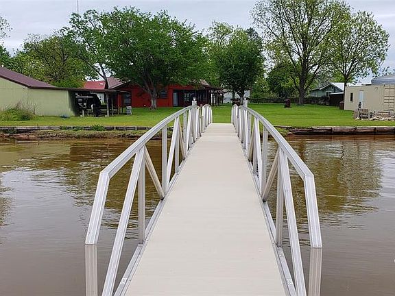 Location, location. On the WATER approximately 130 feet, has a 20 x 20 pad dock with almost 100 feet of walkway, lot over half acre, a beach for swimming. There is storage building with electric and do not let the workshop fool you; it has electricity and decent flooring. House needs updating but it will not stop you from immediately having a party. It is very clean with metal roof, 3 large rooms for sleeping, covered patio same size as dock pad, kitchen has built in buffet, kitchen bar for eating, and nice size separate dinging area.