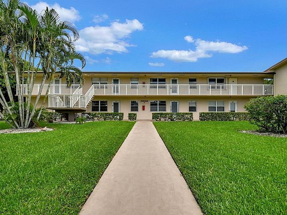 This 2-bedroom, 1.5-bath condo is located on the 2nd floor in the desirable Century Village, a 55+ community, close to the main clubhouse. The unit features parquet wood flooring in the main living areas & bedrooms, tiled floors in the kitchen & has an enclosed patio. The kitchen, while original, does not include a refrigerator & the seller will not replace it. The master bedroom offers a walk-in closet with a tranquil garden view just off the bedroom. The bathroom has a walk-in shower. There is an enclosed patio with tile flooring. The unit is cooled by central AC. The building is beautifully maintained, with a patio area for residents, lush landscaping, a grill for barbecuing. The roof was replaced 2020. No rentals are allowed per the association rules. CASH only sale.