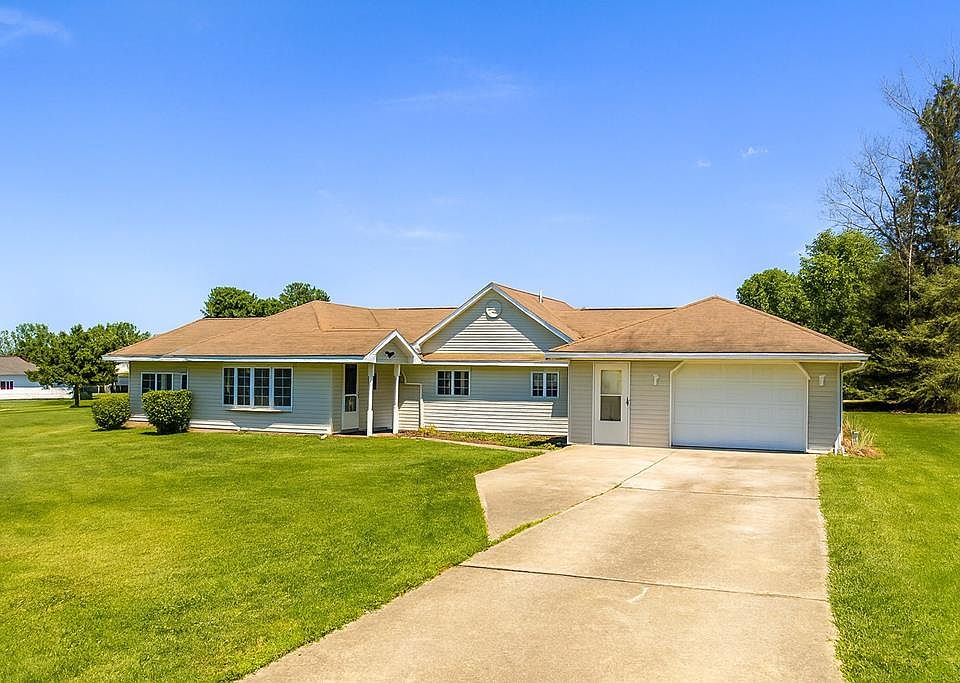 Spacious & Versatile Single-Story Home on Nearly 2 Acres! Welcome to this well-maintained 2-bedroom, 2-bath ranch-style home offering generous room sizes and flexible living space—including the potential for a third bedroom or home office. The eat-in kitchen comes fully equipped with appliances and plenty of space for casual dining and entertaining. Step outside to discover a flat, 1.94-acre lot with a paved driveway and a one-car attached garage. A standout feature is the large shed—perfect for a hobby shop or creative workspace—with a walk-up loft providing additional storage. If you're looking to be out of town but not far away, this home offers a peaceful setting with practical amenities, and delivers comfort, convenience.