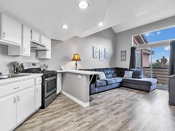Large balconyStainless steel appliancesVinyl flooringUpgraded kitchenHigh vaulted ceilings