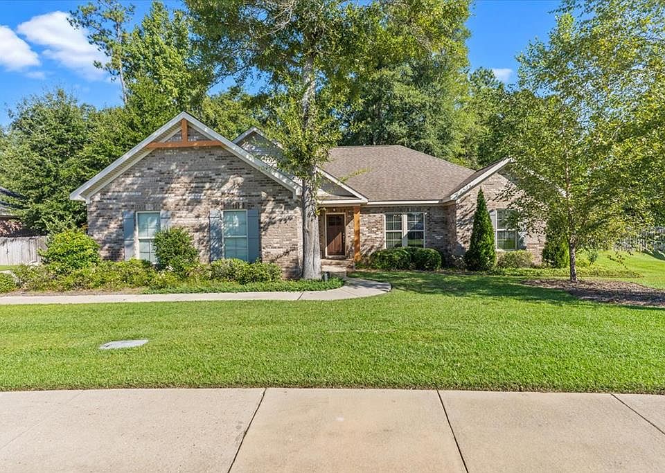 Open House Sunday, Oct. 19 from 2-4pm. Welcome to Hidden Lake East! This move-in ready 4 bedroom, 2.5 bath brick home sits on an oversized lot just steps from the lake in one of Dothan's most desirable neighborhoods. Conveniently located near ACOM Medical School, Southeast Health, and downtown, this home perfectly blends comfort, style, and convenience. Step inside the inviting foyer and discover a private dining room that leads to an open floor plan featuring wood floors throughout the main living areas and cozy carpet in the bedrooms. The designer kitchen is built for entertaining with granite countertops, a large island with a built-in sink, stainless steel appliances, a cooktop, pantry, and breakfast nook overlooking the backyard. The oversized primary suite is a private retreat, complete with a spa-like bathroom featuring dual sinks, a soaking tub, separate shower, and a spacious walk-in closet. Natural light fills the living area and flows seamlessly to the covered back porch, perfect for relaxing or entertaining, overlooking the large fenced backyard with mature trees and woods for added privacy. Residents enjoy sidewalks, a playground, green space, and a beautiful lake ideal for outdoor enthusiasts. Nestled in a quiet, friendly community, this home has it all. Don't miss your chance to make it yours. Schedule your private tour today!