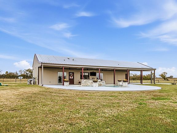 Stunning rustic barndominium built 2023 on 11.60 acres. Home offers attached Carport with easy access to the home. A private Dr. with Custom Auto. gate gives privacy & welcomes you home. This 3-bedroom 2 bath 2 half bath home has an open floor plan. Split bedrooms for functionality & privacy. Interior blend finishes with rustic charm creates a warm & living space for living & entertaining.
