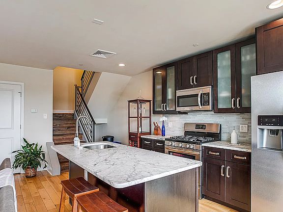 Modern 2BR/1.5BA bi-level condo in the heart of Fishtown with 1,180 sq ft and a private roof deck offering stunning views of the skyline, Ben Franklin Bridge, and Penn Treaty Park. Steps from the Delaware River Trail, Girard Ave, Michelin award winning restaurants (Suraya, Kalaya, Beddia) and entertainment (Johnny Brenda's, The Fillmore). Quick access to I-95, 8 min walk to train, minutes from NJ, and a short drive to Center City and the stadiums, 17 mins from PHL Airport. Features include floor-to-ceiling windows, hardwood floors, a sleek kitchen with stainless appliances and stone countertops, two spacious bedrooms, a spa-like shower with double vanity, and in-unit washer/dryer. The roof deck includes a dry bar and beverage fridge perfect for entertaining. Added perks: sprinkler system, fire alarm system, video door camera & intercom, and bike storage. Water included; tenant pays electric, gas, internet/tv. Available to move-in February 1st, 2026 / Furnished option available. Schedule your tour today!