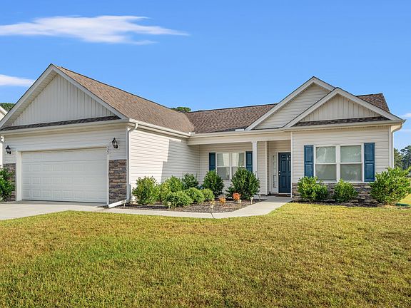 Welcome to 327 Fox Bay Rd in the charming town of Loris! This beautiful ranch-style home offers 3 bedrooms, 2 bathrooms, and 1,694 sq. ft. of comfortable living space. Built in 2020, it was previously used as the community model home and has had only one owner since. Any furniture you see in the home, will convey with the sale. Step inside to an open concept floor plan with a modern kitchen featuring granite countertops, a subway tile backsplash, stainless steel appliances, and a spacious island. Durable waterproof LVP flooring flows throughout the main living areas, while the bedrooms offer cozy carpet. The primary suite includes a tiled bathroom and two walk-in closets—his and hers for added convenience. Enjoy a 0.27-acre lot with no HOA, giving you the freedom to truly make this property your own. The oversized driveway provides plenty of space for parking a boat or RV, in addition to the 2 car garage. Located just minutes from downtown Loris, you’ll have easy access to restaurants, boutiques, and local shops. Plus, you’re only a short drive from the beaches, larger shopping centers, and even more dining options. Offering small-town charm with coastal convenience, this home is the perfect blend of comfort, location, and value. Let's set up your showing and get you moved in to this super cute home!