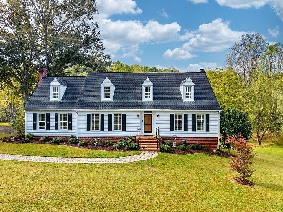 This stunning 5-bedroom Cape Cod home is situated on 2.6 acres in the sought-after Hans Hill neighborhood of Amherst County. The residence boasts elegant long-leaf pine flooring, a main-level primary suite complete with a fireplace, and both formal living and dining areas enhanced by two additional fireplaces featuring gas logs. The expansive eat-in kitchen is equipped with granite and butcher block countertops, custom cabinetry, and abundant natural light. Outdoor relaxation is made easy on the screened porch with Brazilian Tigerwood flooring, which overlooks a serene, beautifully landscaped, park-like yard that borders Harris Creek. Additional features include a whole-house generator, an unfinished basement, and a tranquil cul-de-sac location just minutes from Lynchburg.