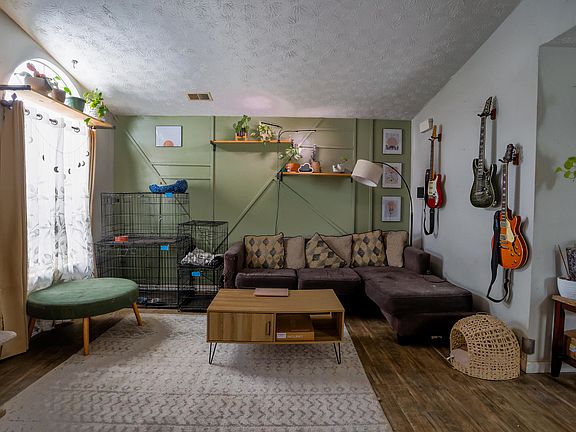 Welcome home to this charming 3 bedroom and 2 bathroom gem including a master bedroom with a stylish shiplap wall. The spacious living room, highlighted by an accent wall, seamlessly connects to the kitchen, creating an open and inviting space.
