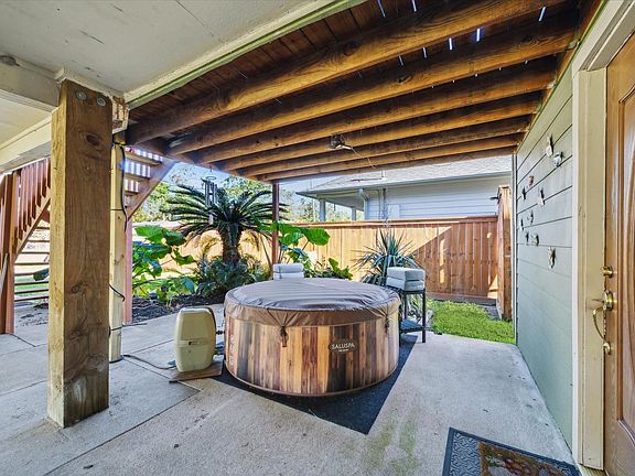 Fantastic opportunity to create an income producing property just minutes from Kemah Boardwalk and a few blocks from Galveston Bay! Main property with 2 story home, hot tub & above ground pool, plus adjoining lot! Upstairs includes a kitchen, wet bar, dining room, and living room (currently set up as a game room), bedroom and full bathroom, and a huge 25x30 addition which could continue to function as a living room (and music/art studio) or put in bunk beds for short term rental potential! Downstairs is the other bedroom and bathroom, plus utility room, and a seating area/entryway. Also accessed through the downstairs are a large storage room and a workshop, and around the corner outside is another storage room. Another house can be built on the adjoining lot or rented out for RVs or mobile homes- no restrictions! Endless options for the creative buyer!