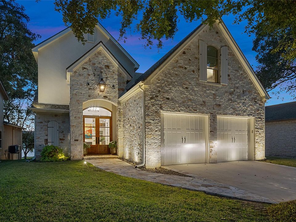 Rare lakefront offering in Meadowlakes,Texas! 5 bedroom, 4.5 bath home built in 2010 atop, arguably the best waterfront lot on Lake Marble Falls. Never before flooded, located in the highly desired Orchard section of Meadowlakes inside this gated and guarded, golf community just minutes from local amenities including HEB, downtown Main Street, Baylor Scott and White Hospital and more. Beautifully designed family-style home that was built sparing no expense to combine luxury with Lake Life. Huge kitchen with Sub Zero fridge, double dishwashers, center island with prep sink, and bar area with wine storage that opens up to the spacious dining and living room. Custom wood doors line the rear of the home and allow the lake dream to come right inside. A gas stove provides added ambience and extra heat for the colder season. Main level primary bedroom with spa-like en suite opens out to the covered patio overlooking the lawn and lake. This awesome outdoor living spaces offers ample room for a dining table, outdoor living room, and a grill with piped propane. Motorized solar shades turn this into a very private space. Upstairs you will find a large secondary living room/game room and 4 spacious bedrooms all with walk-in closets. Lots of built in cabinets! The 4 towering Pecan trees on this property on the lakeside and the massive Oak Tree in the front are amazing to say the least and provide ample shade over the flat yard covered in plush St Augustine grass that is pleasant on the feet. The lakeside yard is fully fenced so you can be sure your loved ones are safe and secure in this large and very usable playground. The steel constructed boat dock with oversized galvanized pilings, composite decking, large slip with ample clearance and very deep water are just the icing on the cake. Custom landscape lighting, an irrigation system that draws water from the lake and the lower level, lakeside garage with approx. 450 bonus sq ft are all extras that set this property apart.
