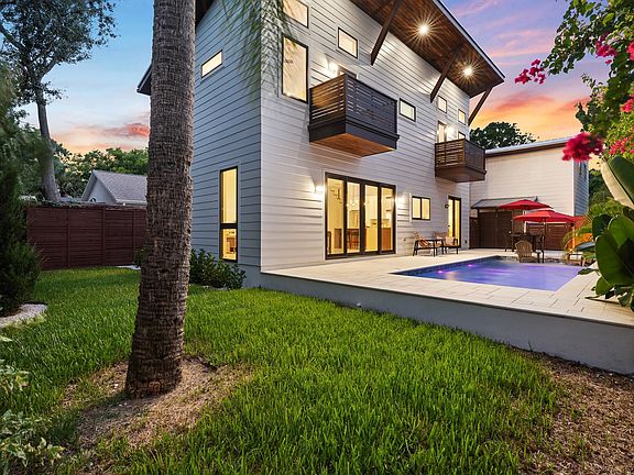 Step into the vision of this custom residence, where intelligent and thoughtful design, true craftsmanship and effortless indoor-outdoor living meet. Featuring a separate guest house and a deliciously private pool, this sunlit sanctuary invites you to slow down and savor every moment of your new life. Main house offers a welcoming gathering area that flows seamlessly to the pool pavilion. A 1st floor guest room with adjacent bath ensures comfort for the list of repeat guests. Upstairs, 2 en-suite bedrooms have singular bathrooms reminiscent of favorite resort spas, and each room has a small balcony where you can welcome the sunrise with coffee in hand. Atop the detached garage, the guest house is a haven of its own to be used for extended visitor stays or remote workspace with some serious style. Including a bedroom, full bath with laundry, living space and a micro-kitchen, this nest is a wonder of comfortable small scale living. Both dwellings enjoy easy access to the pool and the full outdoor bath. Garage includes an electric charger for your car and room for the bicycles and kayaks which will rapidly become your go-to modes of transportation. Explore the neighborhood by bike or foot and discover local favorites along the nearby Boulevard - cafes, restaurants, shops and the natural beauty of the beach at Anastasia State Park. This is not just a home - it's a lifestyle. Relaxed, refined and ready for you.