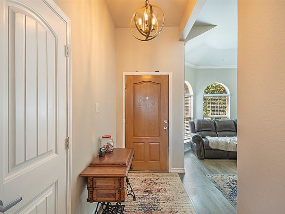 Step into timeless elegance with this stunning 1.5 story home that’s truly move-in ready. From its charming curb appeal and side-entry two-car garage to the thoughtfully designed interior, every detail has been carefully curated. Inside, you’ll find a formal living room bathed in natural light from bay windows and adorned with crown molding, seamlessly flowing into a formal dining room highlighted by wainscoting and a stylish chandelier. At the heart of the home is a spacious living room anchored by a striking floor-to-ceiling brick fireplace, with rich plank hardwood floors extending throughout the main living areas. The kitchen is a chef’s dream, offering a center island, gas cooktop with vent hood, raised breakfast bar, and abundant cabinetry and counter space, complemented by a cozy eat-in breakfast nook. The private primary suite is tucked at the back of the home, featuring a generous layout and a spa-inspired en-suite bath with dual vanities, garden tub, separate shower, and walk-in closet. All guest bedrooms are conveniently located on the first floor and are well-sized for comfort. Upstairs, a massive game room offers endless possibilities for entertaining; perfect for a media room, pool table, or play space. Step outside to enjoy a beautifully landscaped backyard with a large open patio, detached storage shed, and plenty of green space to relax or play. This home is move in ready, don’t miss the opportunity to make it yours!