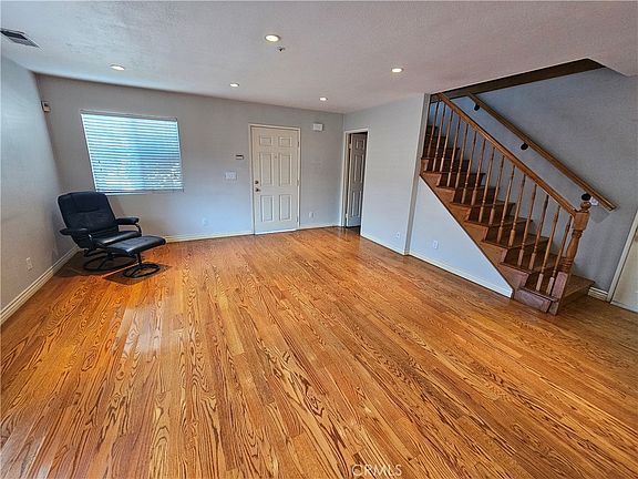 The property for sale is an exceptional unique free-standing condo at the back with no wall attached to the other condo units. A small private side and backyard are excellent for growing your favorite vegetation. Looks like a PUD. A private gated driveway serves these 2 detached condos only. *There are only 2 units in the complex that are detached condos. Excellent neighborhood. Low HOA dues at $270. monthly. Convenient to almost everything. All rooms upstairs are all good sizes. Airy and cozy with 2 balconies. Well-kept shiny hardwood flooring with updated amenities in all bathrooms. Beautiful moved in condition. The primary room has one spacious two sliding door closet and another walk-in closet. All three bedrooms have mirror closets. Recessed lights in the spacious living room and all other rooms. The property is very well-kept and clean. Look no further, your dream home is waiting for you.