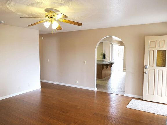 AFFORDABLE & WELL MAINTAINED! 3 brm 2 ba home features hardwood floors in living room and bedrooms. Kitchen granite counters were recently installed, and newer large stainless refrigerator and white oven/stove and dishwasher tops it all off! Light-touch kitchen sink faucet allows for easy water flow control. In the family room French doors lead out to a covered patio and a hefty rear yard. Master bedroom is roomy and master bathroom has a new toilet and faucets installed. Other two rooms are a great size. Interior doors have been freshly painted. Ceiling acoustic popcorn has been removed throughout. All new faux window blinds installed. Home sits on a 9000 sqft lot and offers plenty of space just ready for your RV or landscaping ideas. Mature pine tree in front keeps the home shaded and cool in the summer and fall! Key-pad front door lock offers additional safety and convenience. Catch a beautiful morning sunrise from your very own front porch! GREAT LOCATION AND PRIVACY ON A QUIET STREET!!