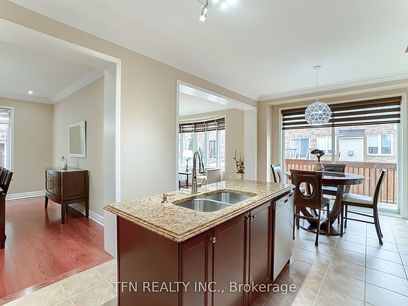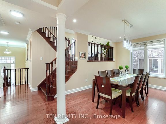 Located in the prestigious Scott neighborhood near the escarpment, this beautifully upgraded home features a highly functional and popular layout with two family rooms, one of them with almost 12' soaring ceilings! The chef's kitchen boasts granite countertops, a central island, a gas stove, and abundant cabinetry, while elegant bay windows enhance the spacious living room. Upstairs, three oversized bedrooms include a luxurious primary suite with a bay window, a 4-piece ensuite, and a massive walk-in closet. Natural light pours in from every angle, complemented by modern fixtures and pot lights throughout. The professionally finished basement features a kitchenette, recreation room, 3-piece bathroom, electric fireplace, built-in cabinets, and ample storage. Entrance to the Basement can be accessed semi-privately through the Garage! Enjoy landscaped front and back yards, featuring low-maintenance artificial turf in the rear, as well as parking for up to six vehicles. Conveniently located near shopping, major amenities, and commuter routes, this home combines comfort, style, and a prime location. Pictures were with furniture; currently, the same furniture does not exist.