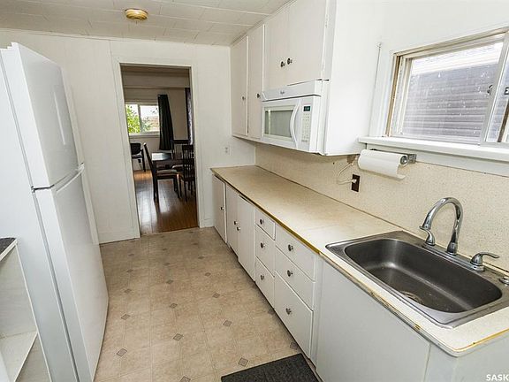 This charming home offers great potential and the zoning is residential. Nestled in a quiet area and offers a beautiful view from the front windows/yard. The house is two levels, with the second level home to the laundry facilities and a second bedroom. The main level offers you one bedroom, a 3 pc. bath, kitchen, living room and porch. There is plenty of convenient rear parking. The property has been updated with several newer windows, interior was painted in 2023, some of the siding was replaced after the hail storm (2015), newer shingles, and the water heater replaced in July 2021. A convenient back porch entrance adds to the home's appeal. Don’t miss out on this fantastic opportunity at a good price. 2025 property tax levy: $1596.63 Sask power Oct 1st, 2024 - Sept. 30th, 2025. avg/ month: $89.89 Sask energy Oct 1st, 2024 - Sept. 30th, 2025. avg/ month: $99.97
