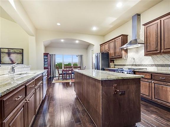High-end gourmet kitchen w/pot filler and built-in stainless Kitchen-Aid Architectural Series appliances, large upgraded granite countertops, built-in 42" refrigerator/freezer, and two large islands consisting of a center island & large breakfast bar. Large pantry and laundry room with laundry sink and cabinets. Two fireplaces; one an energy-efficient direct vent, the other a wood-burning with gas starter, to enjoy quiet times. Stone fire pit with stone-bordered, crushed granite pathway. Acclaimed Dripping Springs Schools with the elementary school an easy, enjoyable, and relaxing walking distance away! Food forest for the garden enthusiast: fruit trees & raised vegetable beds. A true sanctuary with a resort feeling. Buyer to verify all info.