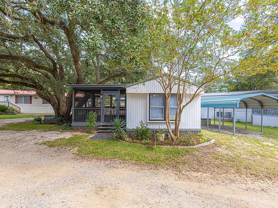 Partial Owner Financing Available. Owner is open to creative ideas. One of the photo is staged to show decorative idea. Picture says vurtual staging". Lets get you moved into this charming beach cottage! Lets make a deal! Beautiful renovated beach home with privacy, a rare situation. Neighbors are like 100 feet from your huge screened porch and deck.. 4 minutes walk to the Waterford Oaks waterfront community pier and gazebo. 6 minutes walk to the Atlantic Avenue fishing bridge with views of the Marsh. 12 minutes walk or 4 min bike/golf cart/car ride to the Ocean! The home includes an area to store a few golf carts, or use some of the property for your free personal boat storage. Waterford Oaks also includes free access to the community ramp to launch your boat. 12 foot x 16 foot screened porch, a 12 foot x 29 foot outdoor main deck and a small side deck of 7'x10' for relaxing, socializing and barbecue. 728 square foot home with 560 square foot of outdoor living space! One of the largest outdoor decks in the area. Space for a big outdoor table, multiple seating areas and a barbecue space with ocean breezes. The home is bright inside. Free standing shed for your yard supplies. A totally refreshed home near the beach! Great, bright kitchen for those who love to cook and entertain! Dimmer lights and undercounter lights. Three seat breakfast bar to socialize while cooking. Lots of kitchen storage. Over-range microwave that exhausts directly to the outdoors for a fresh home. Nice counter space, plenty of outlets for counter appliances and charging phones. Garbage disposal. Spacious bathroom with adorable furniture. Very large walk in shower with elegant wall tile and hexagonal marble floor. Large vanity storage and large free standing storage. Cute free standing linen cabinet in the hallway. Six different evening light levels from low elegant, to cafe lights over the deck for entertaining. Your own private park bench under the trees! Accommodates 7 to 8 cars for yourself and visitors. Carport. Shed. Roof was replaced and is in very good/excellent condition. AC coil replaced 2025, cools house very quickly. New bathroom exhaust fan. The best part is that you will be living under the partial shade of the most spectacular Live Oak trees in Garden City area! The deck feels like a tree house, with bird noises all around, squirrels and occasional geese walking by. For those who love outdoor serenity and a quick walk or bike ride to the beach, this is it! Option price to add a 2nd bathroom making it a 2br/2ba. Option price for large hot/cold outdoor shower. Base cabinets can convert to dishwasher slot if needed. Deck Painting is included in price, your choice of color. Move in special going on now. Lease may be able to be paid monthly for the 1st year!